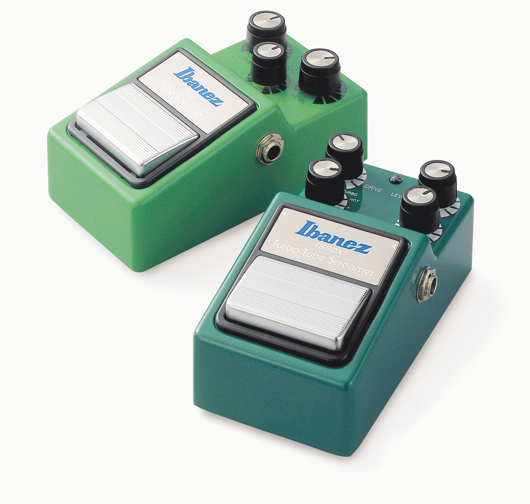 The Ibanez TS9 Tube Screamer Pedal features Drive, Tone and Level controls